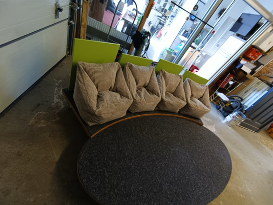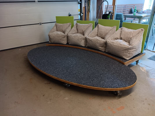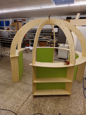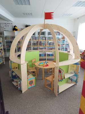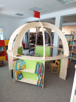 05. Oktober 2025 Spielecke Spielecke mit Regalen von der Außenseite für Bücher und Spielzeug. Ein paar Sitzsäcke als Sitzgelegenheit wurde auch dazu gebaut. tagPlaceholderTags: